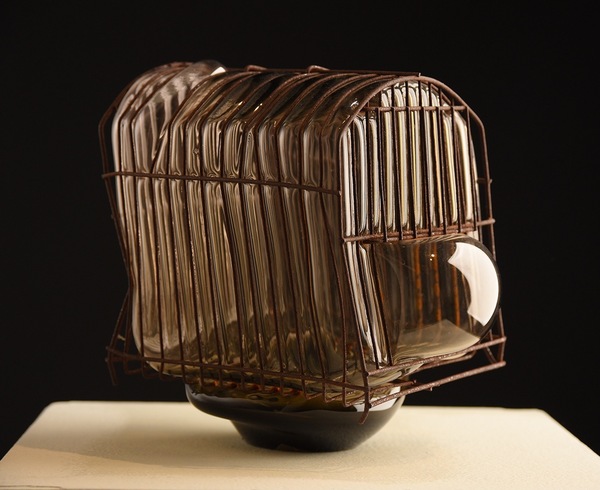 De Ruiz Otis se presentan dos jaulas que, siguiendo su práctica habitual, fueron objetos encontrados como desechos o chatarra y recuperados mediante intervenciones; en este caso, a través de vidrio soplado.