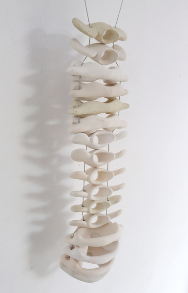 Lupercal es una serie en la que abordé la transición del lobo al perro doméstico como un proceso escultórico. A través de reproducciones en cerámica de huesos de perro y de ser humano, realicé composiciones que aluden al contacto entre ambas especies, en las que los canes, al ser domesticados, fueron reducidos, modelados y condicionados a las formas de vida humanas. Cada escultura lleva un nombre que remite a mitos occidentales protagonizados por partes del cuerpo, ya que muchas de estas narrativas contienen una especulación moral que vincula la fisonomía con la construcción cultural de lo civilizado.