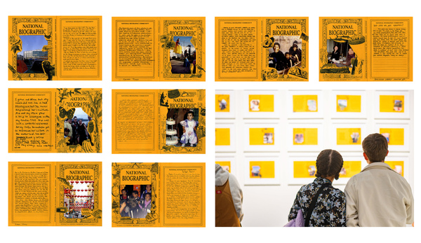 "National Biographic is part of a larger project that explores how national identities are shaped, remaining vigilant to the colonial and racist foundations that continue to underpin nation-states. By reworking iconography from National Geographic magazine—a historical source for Western perspectives on “other” cultures—Daniela Tinoco creates a space for people to come together and share their own counter-narratives. Through this collective reclamation of agency, solidarity is fostered among San Francisco State University community members engaged in various struggles of resistance. Collaborators: Emily Gonzalez-Zeas, Crystal Jauregui, Venus Harvey, Sophia Vallardares, Kimberly Beutin, Vi Lee, Mariela Esquivel, Aaliyah Andino, Jordaye Simone, Jordan Madayag, Daisy Vang, Char Bennett, Renna Lanney Johnson, Zixuan Zhang. 15 different pieces available, should be shown in a group of minimum 6 pieces, closer look at: https://www.danielatinoco.com/portfolio/natbio" Las piezas se venden por separado.