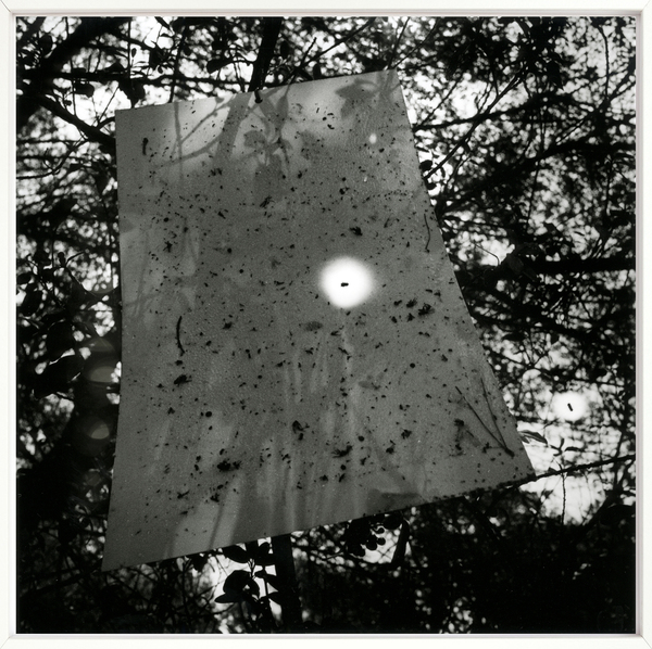 Flare propone parasitar la imagen por medio de la luz a partir de la manipulación directa del soporte fotosensible, donde se permite deliberadamente la entrada de luz por pequeños orificios, generando una presencia lumínica no controlada que se infiltra en la imagen como un cuerpo ajeno. En la tradición fotográfica, el flare o luz parásita es considerado un error óptico: una irrupción no deseada de luz que contamina la imagen. Esta serie se apropia de ese accidente y lo convierte en principio estético y gesto principal de las piezas. La luz, que habitualmente construye y da forma a lo visible, aquí irrumpe como agente invasivo, alterando la superficie de la imagen desde dentro. Flare plantea una simbiosis entre el motivo y el proceso fotográfico. Por un lado, se presentan insectos atrapados en trampas lumínicas —seres que perforan, habitan y se alimentan de otros cuerpos— mientras que por el otro lado, las propias imágenes son devoradas por la luz. Tanto la luz como los insectos actúan como parásitos: se filtran, carcomen, se instalan y quedan atrapados donde no fueron invitados.