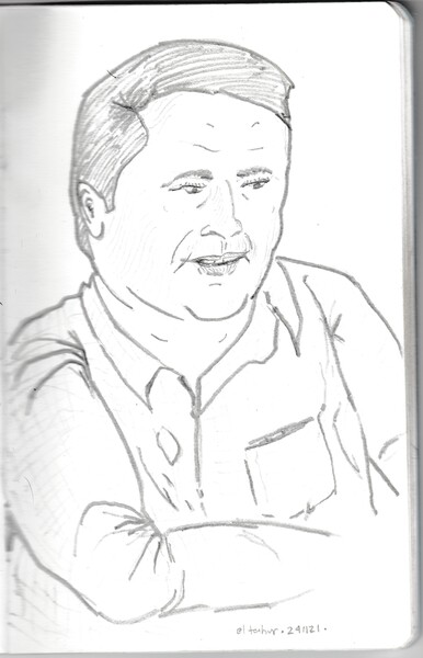 La obra constituye un registro dibujístico de retratos y escenas cotidianas con las que el artista se ha encontrado en sus visitas a cantinas y bares de México a lo largo de 6 años (2020-2025). Arrancados de los cuadernos, los 63 sketches que conforman la serie devienen en una instalación efímera para Salón Acme No. 13. Este proyecto reivindica la tradición del dibujo in situ y su carácter documental y periodístico, donde el boceto y la obra final se funden.