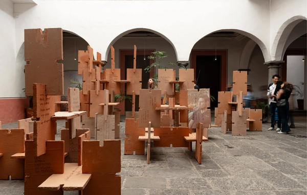 Esta obra recupera historias de maestros albañiles de la familia Cuautle Coyotl de San Antonio Cacalotepec, comunidad dedicada a la construcción en Puebla. A partir de conversaciones, los relatos se escriben sobre concreto fresco como un documento que traduce gestos y memorias, resignificando las autorías colectivas y anónimas que sostienen el espacio edificado.