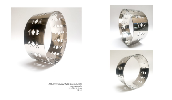 Los CPT´S (Cylindrical Public Texts) Caligramas 3D son textos habitables que se comportan de manera circular, y que pertenecen a un imaginario colectivo de nuestra sociedad actual. En este caso la dicotomía-juego JOB/JOY refleja la manera mecánica y repetitiva de las temporalidades cíclicas semanales de las jornadas laboreles. Entre semana/fin de semana, Trabajo/diversión, remuneración/recreo, responsabilidad/disfrute. Sólo hay una letra de diferencia. ¿B o Y? Somos Loops.