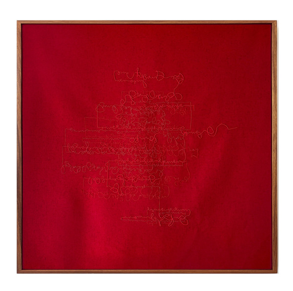 Dibujo con hilo bordado a mano sobre paño de lana