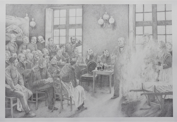 Esta pieza retoma la escena de Una lección clínica en Salpêtrière (1887), pintura de André Brouillet sobre el tratamiento con hipnosis para la histeria desarrollado por Jean-Martin Charcot; pero desaparece a la paciente, revirtiendo el espectáculo que ya sin el cuerpo patologizado se vuelca hacia la puesta en escena de la clínica.