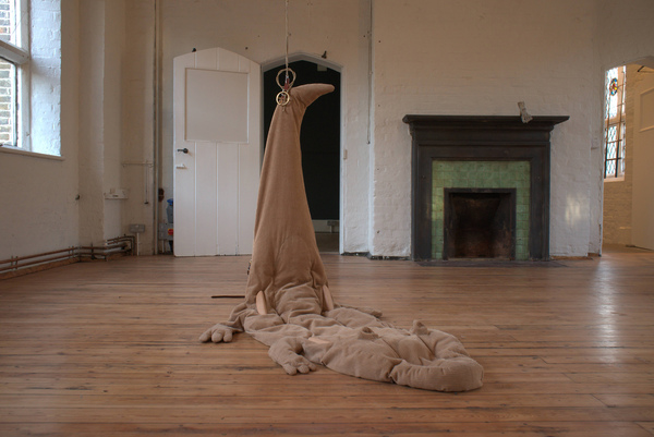 ‘Log’ reconfigures the form of a crocodile-shaped pool float into a kind of furniture object. The work considers nostalgic impressions of objects and textures of the past, presenting their amalgamations as deflated predator-shaped leisure object.