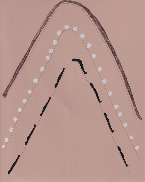 Pertenece a una serie extensa de aproximadamente 120 dibujos realizados durante 3 años. Pueden entenderse como preescenas, maquetas narrativas y aproximaciones a su proceso escultórico; sin embargo, cada dibujo se mantiene autónomo en sí mismo. De ahí su alto valor y relevancia en el trabajo de Wozny. Tres puentes en forma de V invertidas sirven
