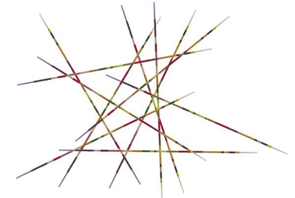 Cada bastón es un código de color, elaborado por cada integrante de la colectiva; la medida del tejido responde a las estaturas de nuestros cuerpos. La paleta de colores del conjunto de todos los tubos recopila la exploración del material y los tonos de los encuentros y aprendizajes, a lo largo de tres años, en el teñido de lana con tintes naturales de San José Cuacuila, una comunidad en la Sierra Norte de Puebla.