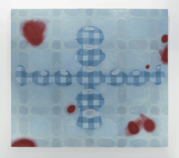 "Pintura de semi abstracta de técnica mixta realizada con material de construcción, muestra la imagen de un rostro moviéndose de izquierda a derecha y de arriba a abajo simultáneamente, mientras una serie de luces rojas se mueven al rededor. El fondo se compone por un cielo compuesto como un patrón de tartán, en donde cada intersección de horarios implica el oscurecimiento del manto celeste. El tartán como elemento gráfico hace referencia a la dicotomía de su uso histórico, tanto en alta sociedad británica como en la subcultura punk, convirtiéndose en una alegoría sobre la mercantilización y el estado de simulación en el que se encuentran los raves y las fiestas underground en la época del capitalismo tardío. El nombre de la pieza es una palabra compuesta de las palabras “rave” y “reverie” esta última cuyo significado se asocia a la ensoñación y los pensamientos agradables, similar al estado meditativo que se obtiene a través del baile y el consumo de sustancias."